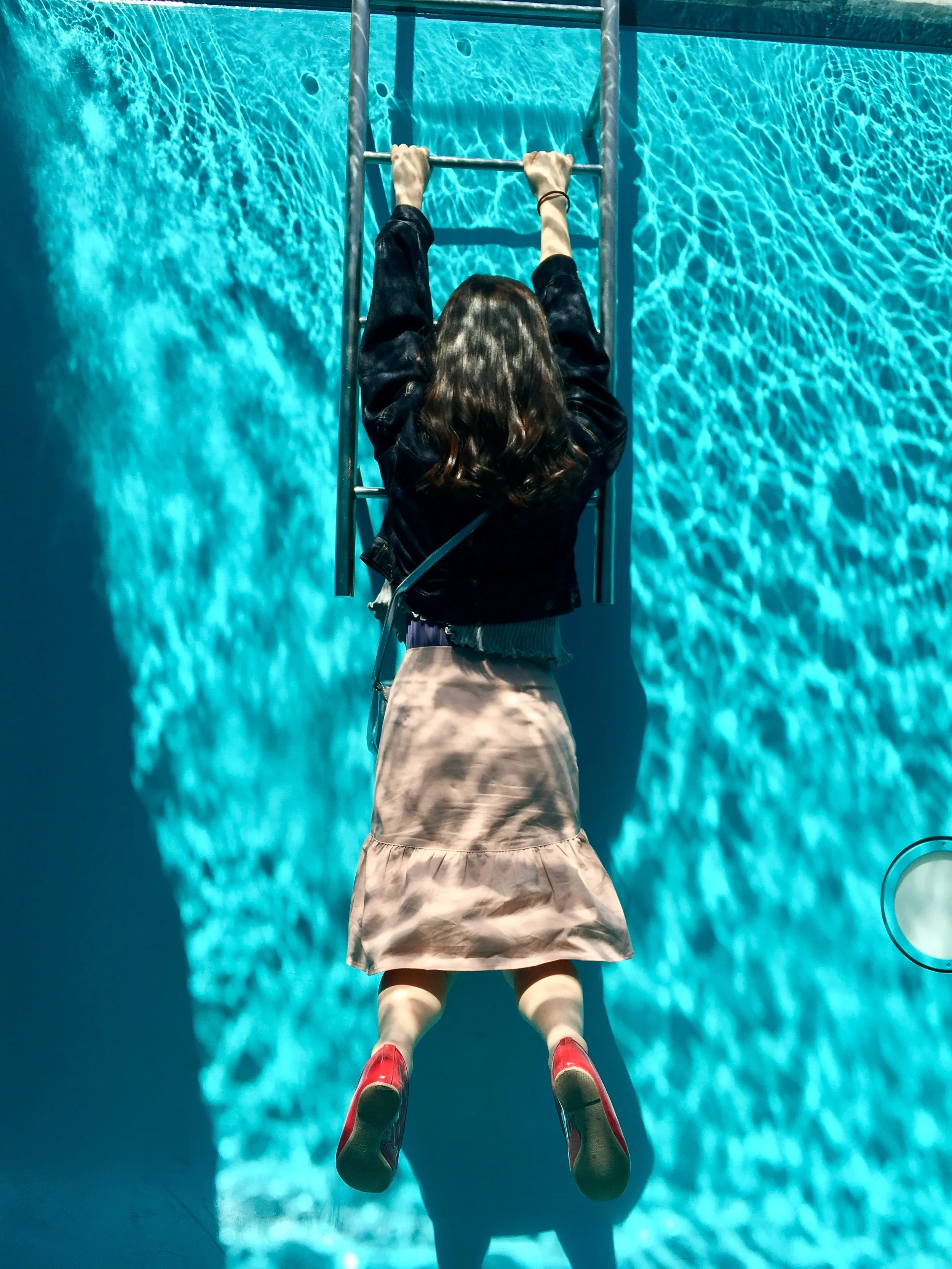 Swimming pool art installation in Kanazawa at the Museum of 21st Century Art. The model is real, everything else is an illusion.